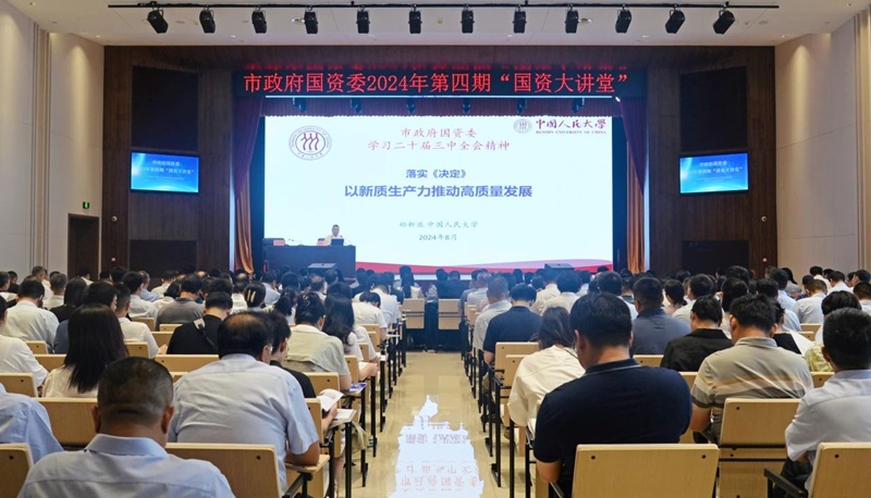 黨的二十屆三中全會擘畫了進一步全面深化改革、推進中國式現(xiàn)代化建設(shè)的新藍圖,黨中央、省委、市委要求切實抓好黨的二十屆三中全會精神的學習宣傳和貫徹落實。8月13日上午,市政府國資委在鄭州水務(wù)集團有限公司智慧水務(wù)中心舉辦2024年第四期“國資大講堂”,邀請中國人民大學黨委常委、副校長鄭新業(yè)教授圍繞《學習黨的二十屆三中全會精神 以新質(zhì)生產(chǎn)力推動高質(zhì)量發(fā)展》作專題輔導(dǎo)。