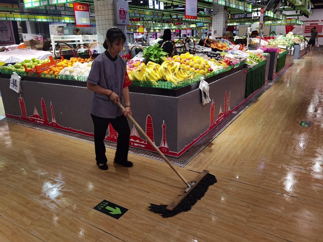 農業(yè)公司安全小組人員立即啟動防汛安全應急預案,對市場易積水點、漏水點、排水口進行檢查清理,做到積水及時排放,防止下水口堵塞、雨水積存,并鋪防水腳踏墊,全天候清掃保潔,豎立標識,引導市場商戶、購物群眾注意防滑安全。對容易出現(xiàn)水電火災的插排、線路、交換點等進行防水處理,防止火災、觸電現(xiàn)象發(fā)生,及時發(fā)布災害預警信息和防災避災辦法到市場商戶群,督促各商戶從業(yè)者積極做好氣象災害預防工作,做好市場必需品供應,保障惡劣天氣物價穩(wěn)定。